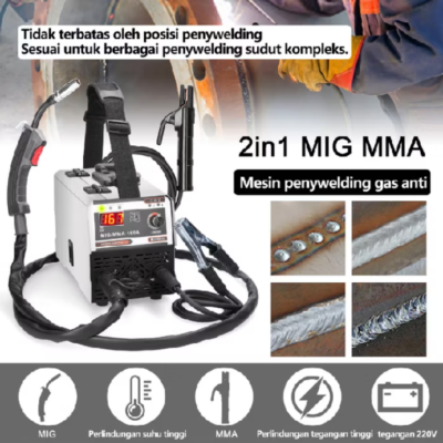 Fitur Tambahan: Pengaturan kecepatan kawat presisi (13 level), desain ringan (portabel), dilengkapi aksesori standar (obor MIG, pemegang elektroda, kabel las, dll.).
