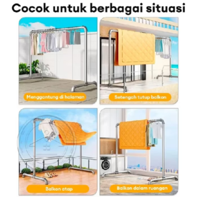 Tabung Baja Jemuran Baju 200cm Jemuran Baju Stainless Steel Gawang Baju Stainless/Windproof Hook dengan harga Rp99.000